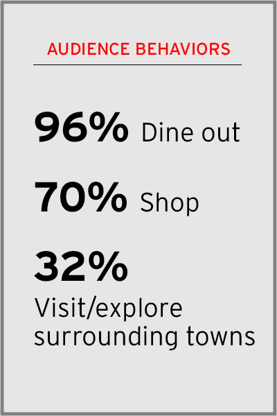 The Festival experience goes beyond what’s seen on the stage — it includes enjoying the area’s many restaurants, shops, inns, historic sites, and wide range of recreational activities.